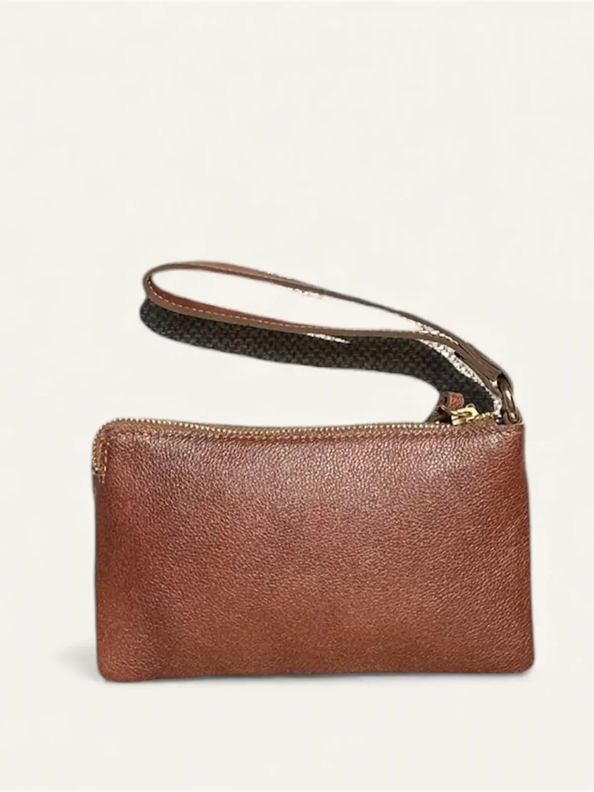 Su formato tipo muñequera permite llevarla cómodamente en la muñeca, ofreciendo libertad de movimiento y seguridad. Es perfecta para transportar lo esencial — celular, tarjetas, llaves y pequeños objetos personales — manteniendo una silueta ligera y sofisticada.